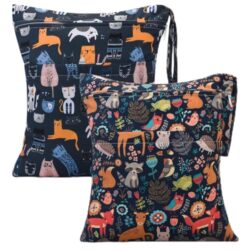 eaxin 2pcs Cloth Diaper Wet Dry Bags Waterproof Reusable with Two Zippered Pockets Travel Beach Pool Daycare Soiled Baby Items Yoga Gym Bag for Swimsuits or Wet Clothes-Animal
