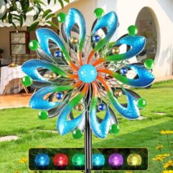 NUENUN Wind Spinner Outdoor Metal - Multi-Color Seasonal LED Lighting Solar Powered Glass Ball with Kinetic Wind Spinner Dual Direction for Patio Lawn & Garden : Patio, Lawn &