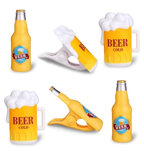 SCNWQ Beach Towel Clips – 6PC Stylish Towel Holders for Beach Chairs, Beer Design Pool Chair Clips – Cruise Essentials for Beach Vacations to Keep Your Towels Secure from Blowing Away