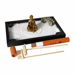 Product Features 7.6″X 5″ Mini Meditation Buddha Zen Garden for desk toys for office relaxing gifts. This Tabletop Zen Garden come with 10 pieces: a Base, 3 Rocks, a