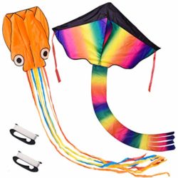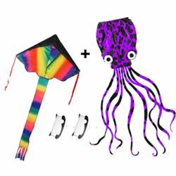 Product Features 【Upgraded Larger Rainbow Octopus Kite】: The package includes rainbow delta kite and larger Octopus Kite, with 2 handles and needed string. You can enjoy this summer with