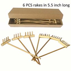BangBangDa Mini Zen Garden Rake – Tabletop Rock Garden Sandbox Tools Kits – Japanese Desktop Meditation Sand Box Accessories Set of 6 mini zen garden rakes which are made