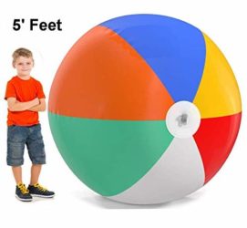 Top Race SUPER JUMBO 5 Foot Beach Ball. 80 inch beach ball in diameter from top center to bottom center, The Top Race beach ball comes in the traditional